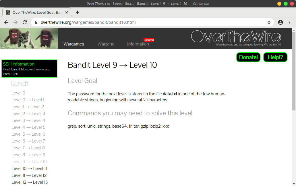 ssh bandit.labs.overthewire.org -p 2220 -l bandit9