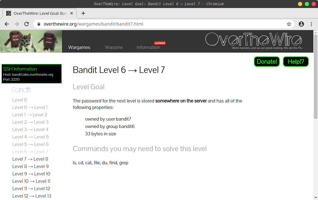 ssh bandit.labs.overthewire.org -p 2220 -l bandit6
