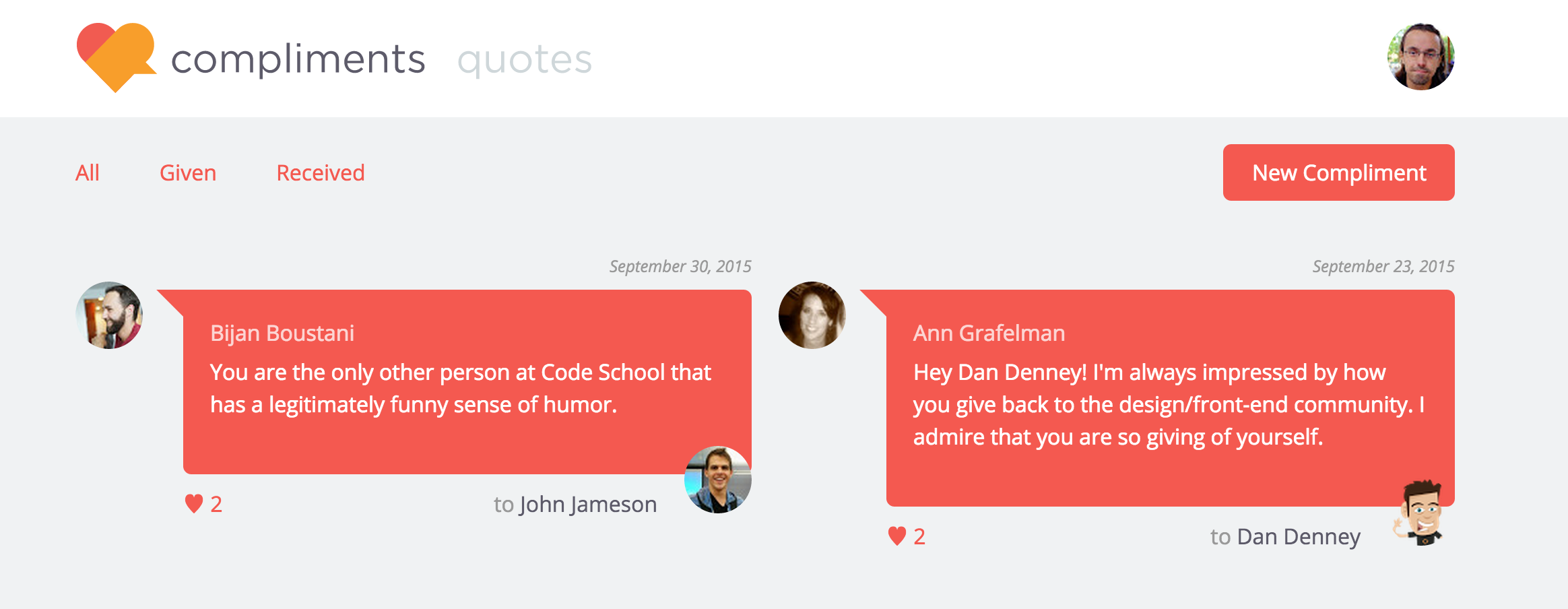 - See all the compliments everyone sends to each other