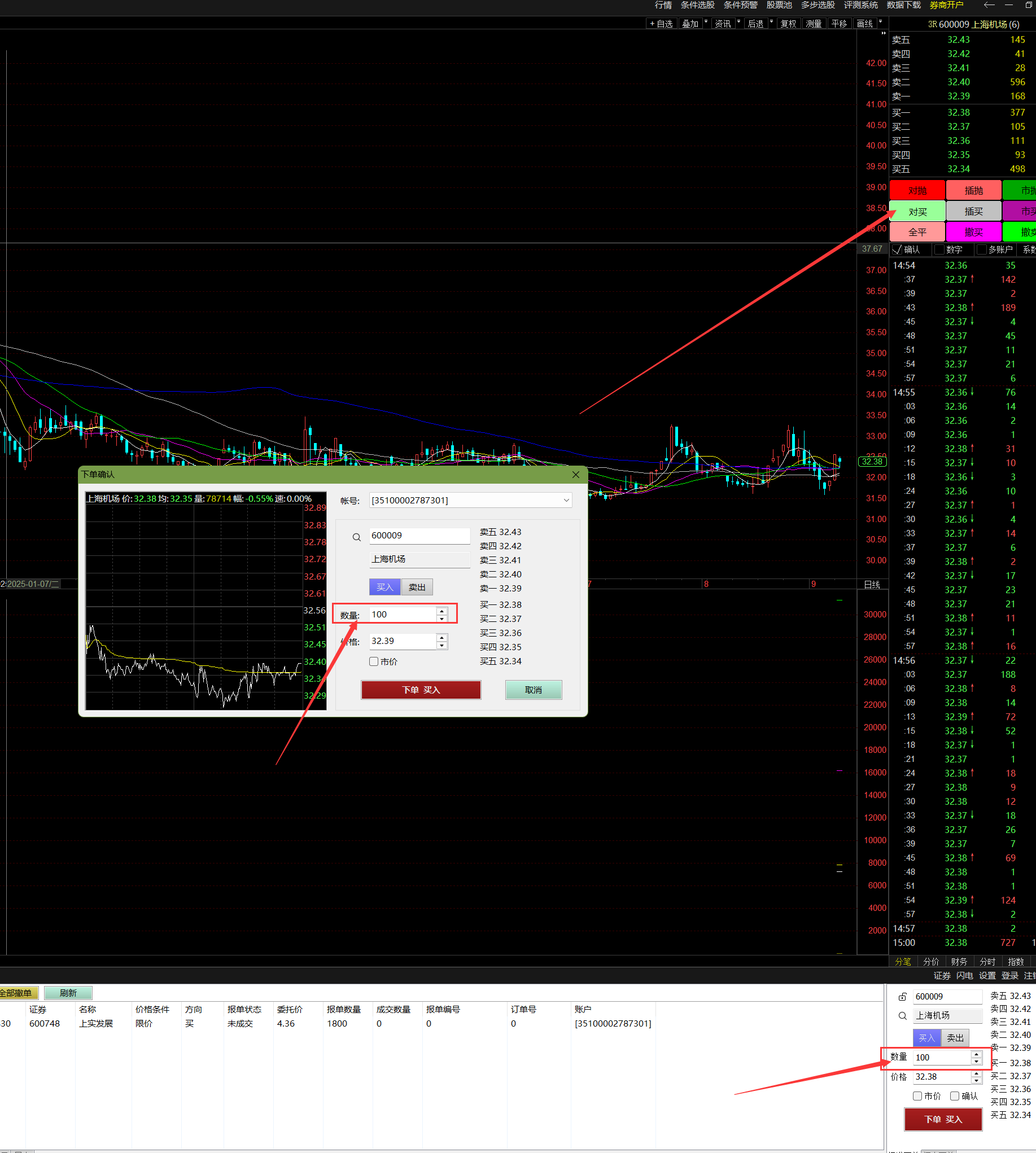 二,易得自带的下单界面,按股数下单。
