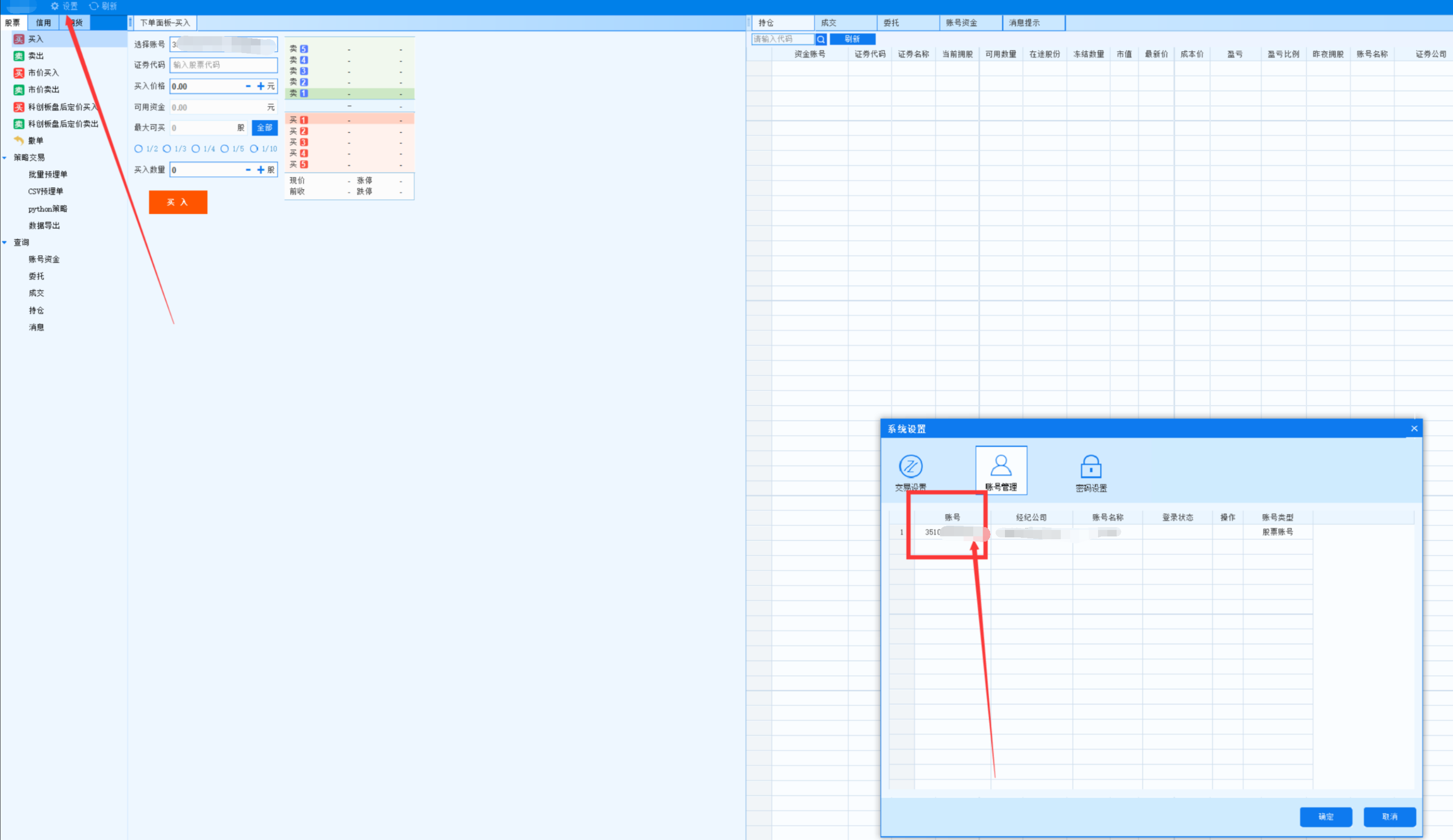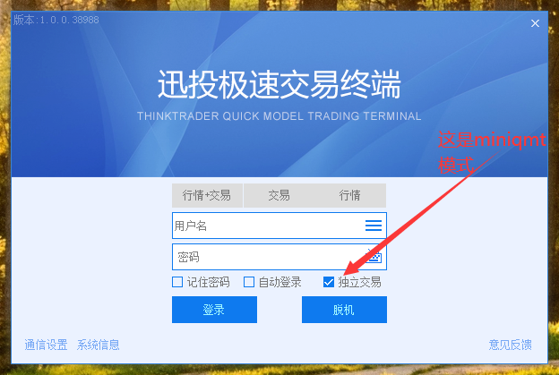 2)在miniqmt里面登录证券账户