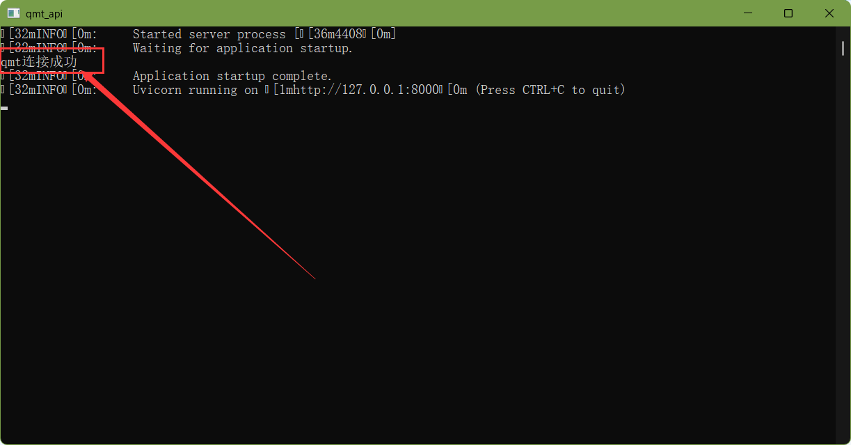 3)解压qmt_api.zip到任意文件夹,双击qmt_api.exe启动。如果显示"qmt连接成功",后端就好了。