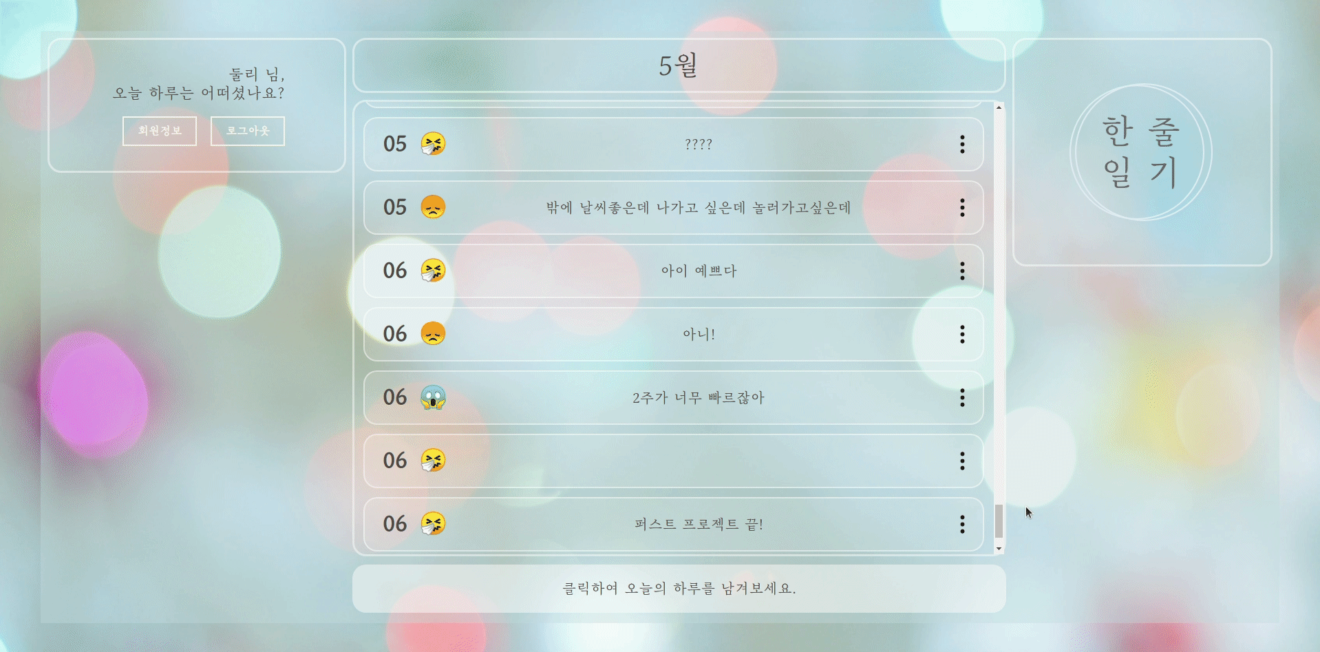 당신의 하루를 간단하게 기록하고,