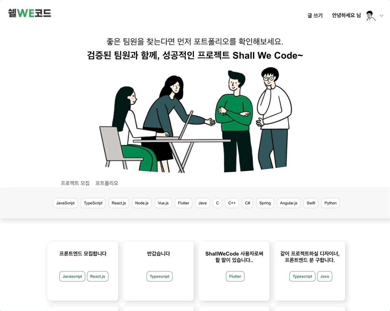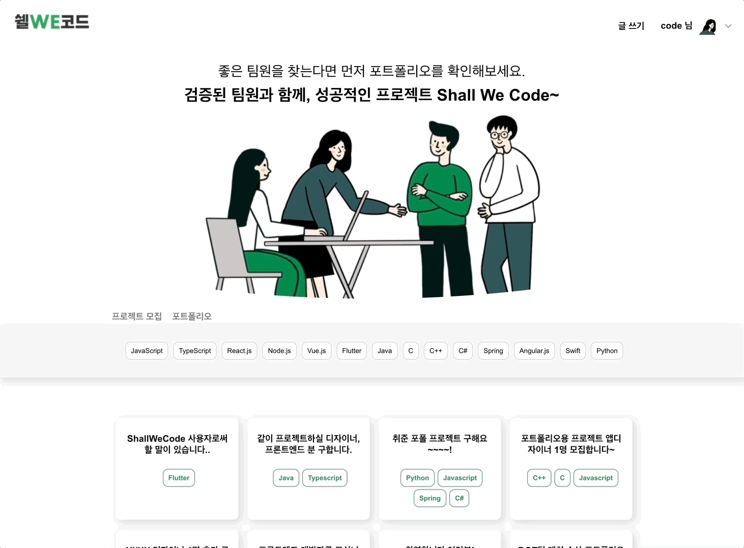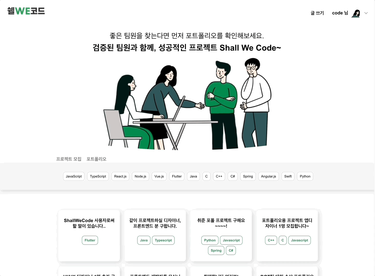 개발자들을 위한 Shall We Code에서 마음에 드는 팀원을 구해보세요!
