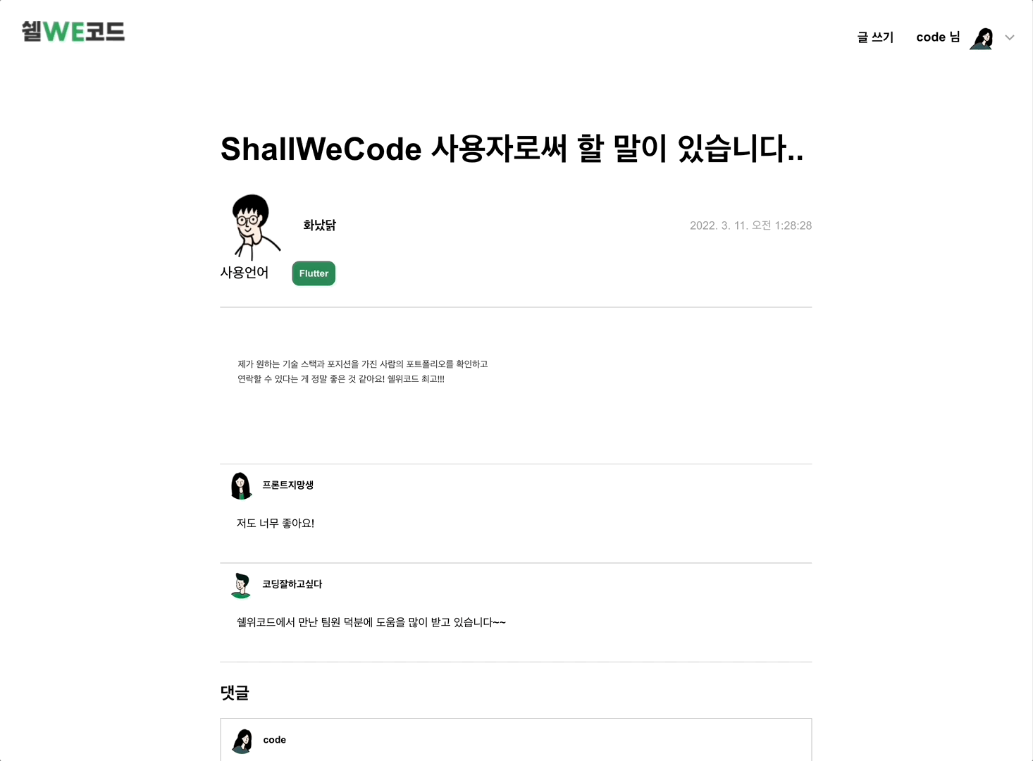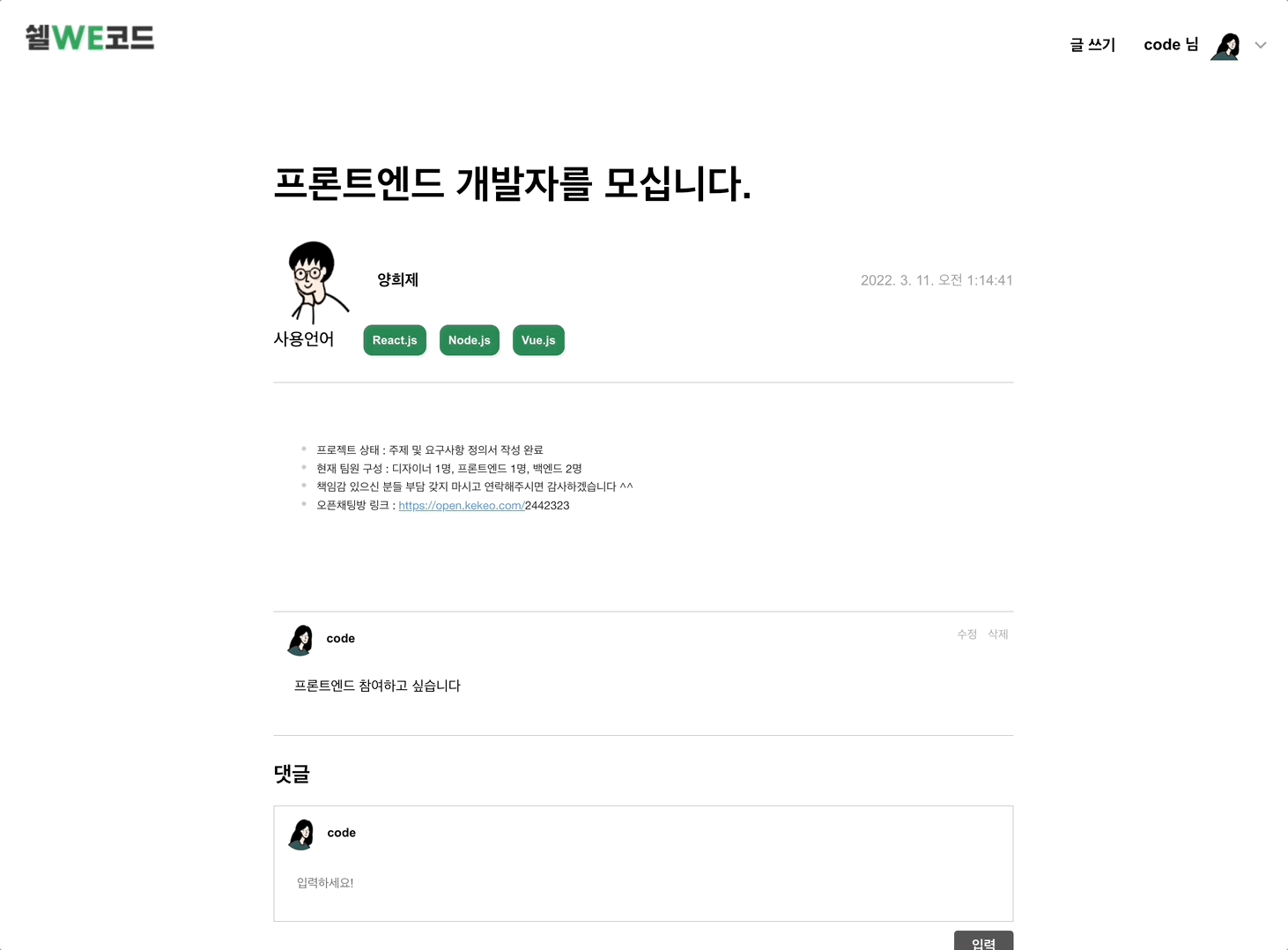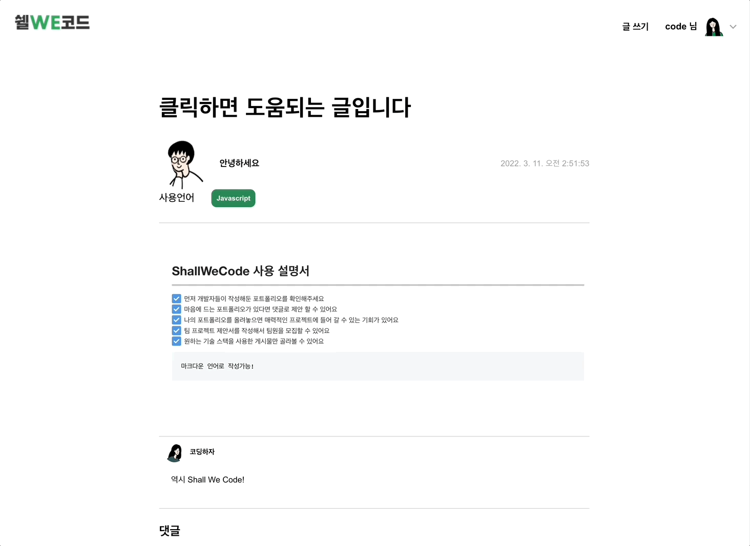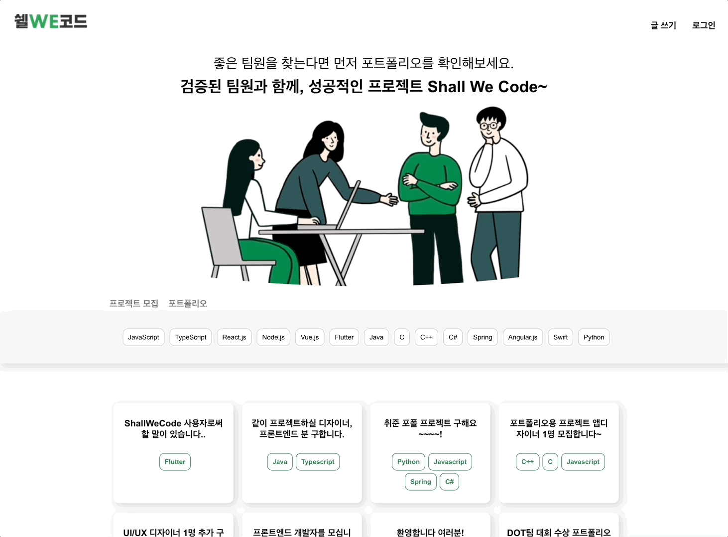 개발자들을 위한 Shall We Code에서 마음에 드는 팀원을 구해보세요!