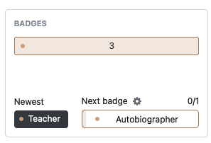 Badges/Achievements could be shown only privately to the user, or could also be used as a way to show off on your profile. There may be multiple reasons for choosing either solution (too much power gives incentives for misuse).