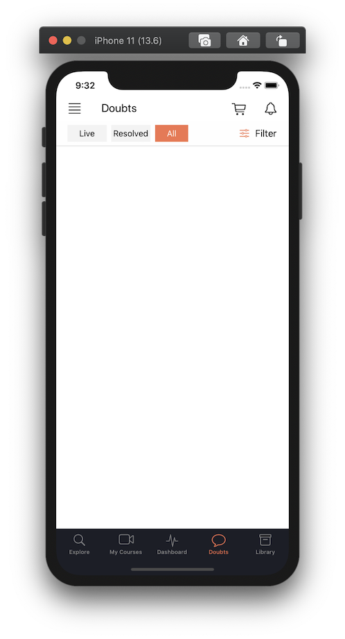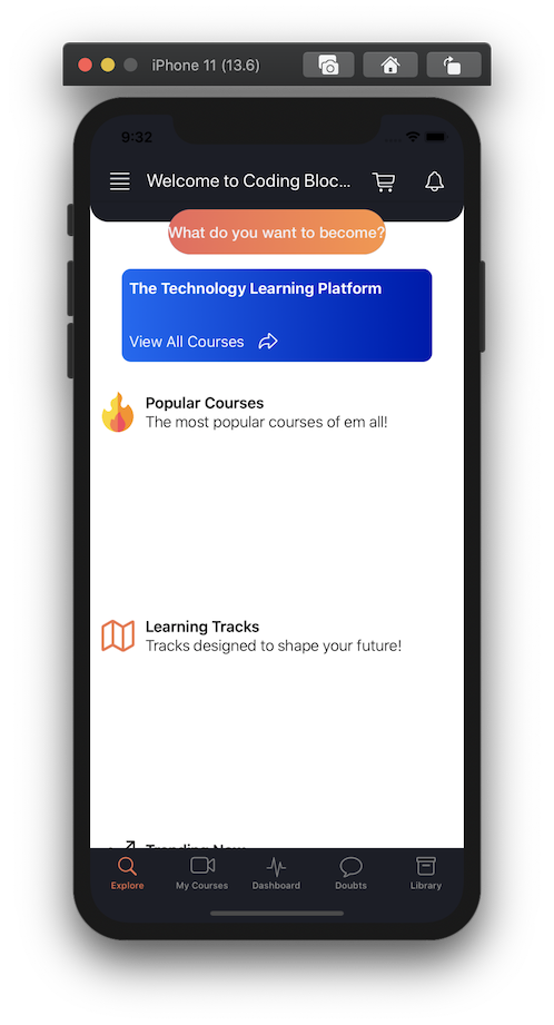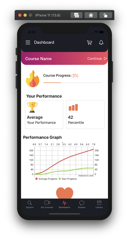 The UI for the Dashboard is complete. With WIP UIs for Library, Doubts, and MyCourses.