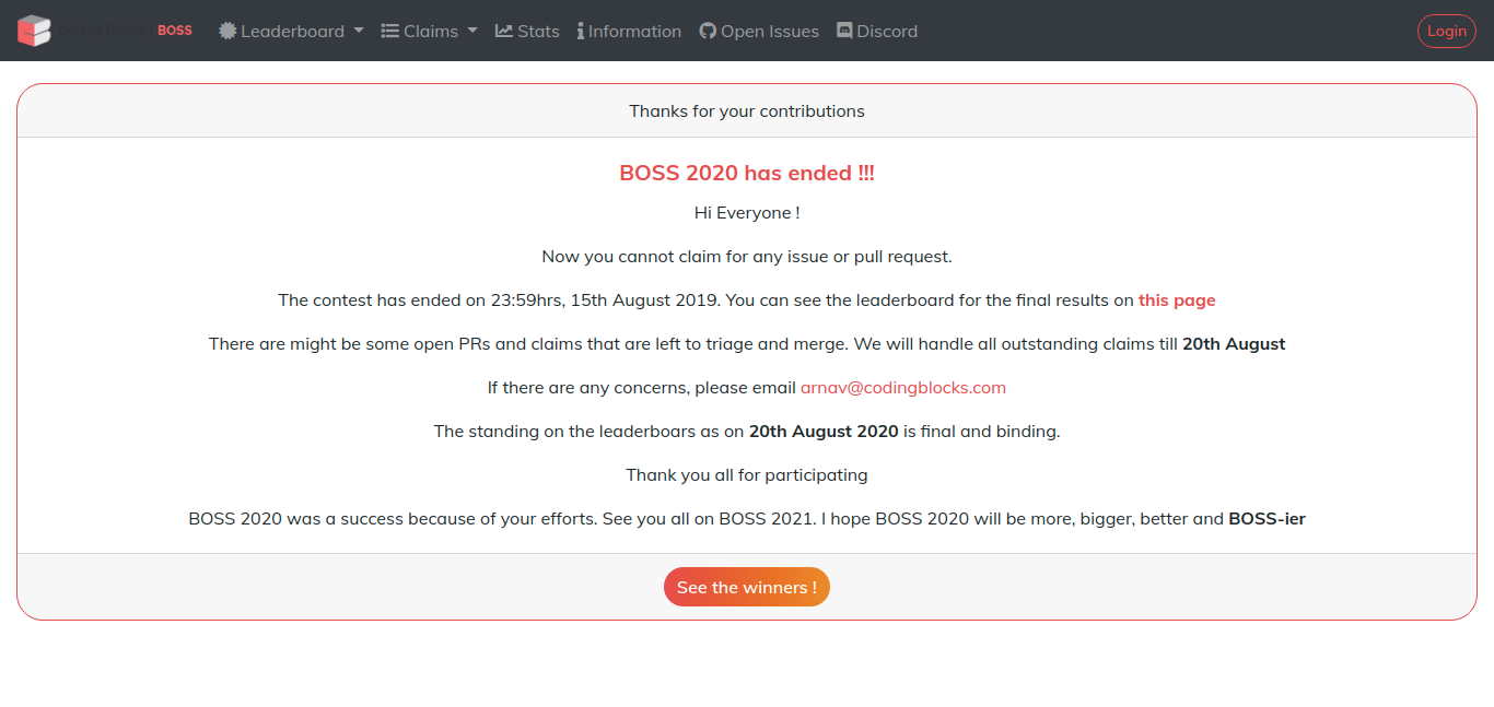 Congratualtions @YashKumarVerma, your pull request is merged! 🎉 Thanks for your contributions and participating in BOSS 2020. 🙌 You can claim your bounty points here. 💰 |