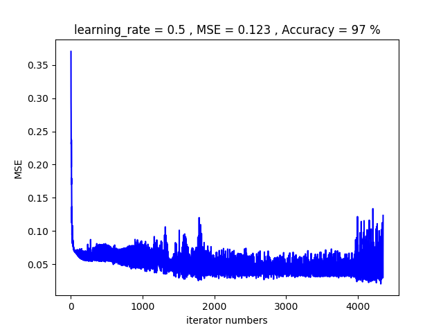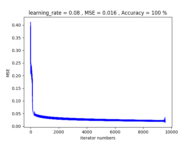 學習速率 | 迭代次數 | MSE | 正確率 | |