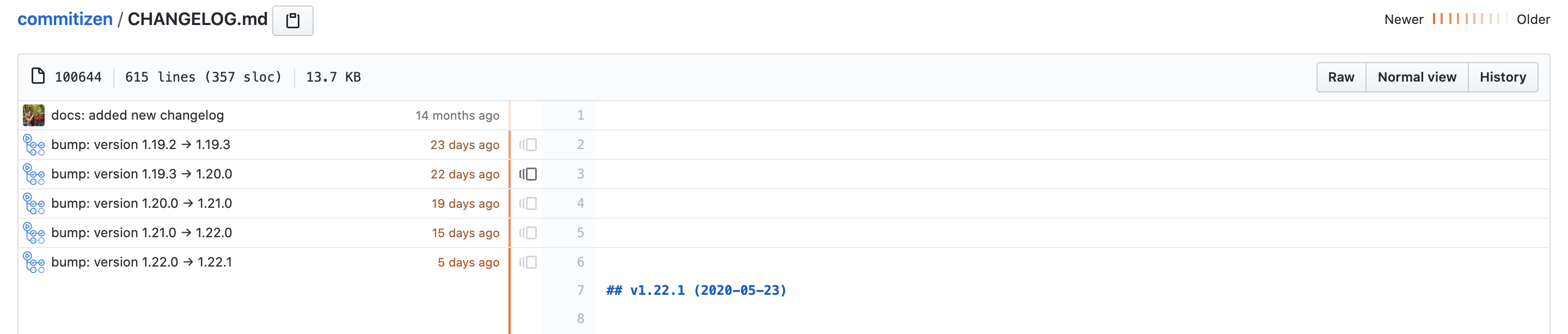This can also be seen here with blame - https://github.com/commitizen-tools/commitizen/blame/master/CHANGELOG.md