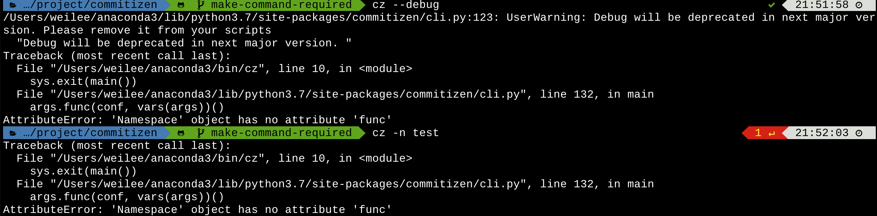 without enforcing subcommand, exception would be raised when running `cz -n test` or `cz --debug`