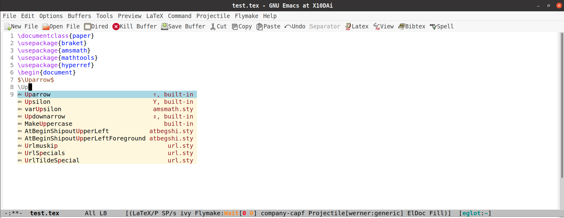 auctex,eglot,texlab, andcompanyto build a vanilla Emacs based LaTeX document preparation system.The detailed settings are described here. The company relevant configuration is shown below: