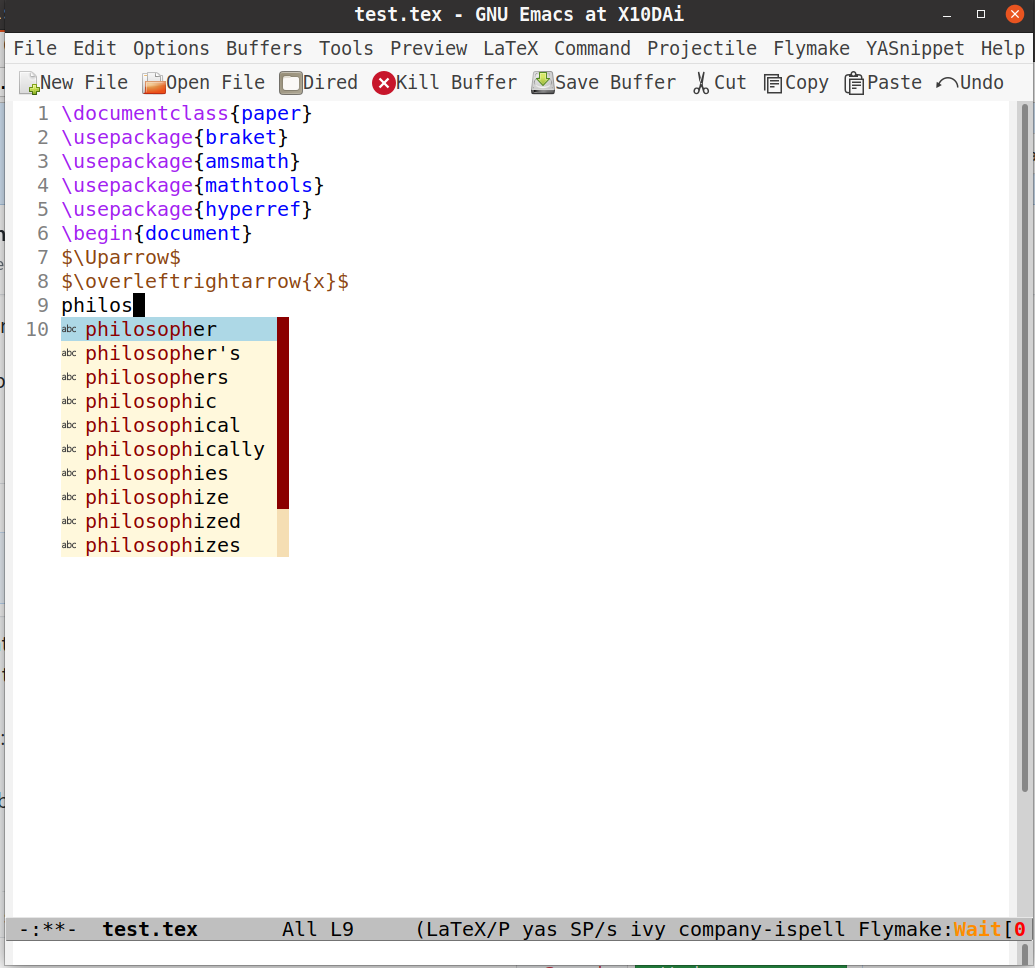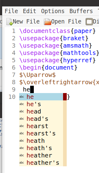 Another issue: can I have a drop-down menu for normal writing/typesetting, just as we have for command completion with company, which is triggered by a specific threshold of the minimum number of input characters, say, 3, and then incrementally narrowed down as the input sequence increases. See here for detailed discussion. |