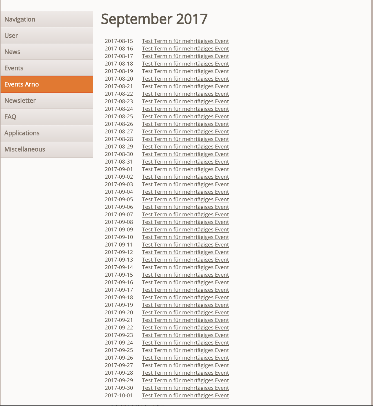 all dates from the start of the event (2017-08-15) until the end of September are shown (see also screenshot)