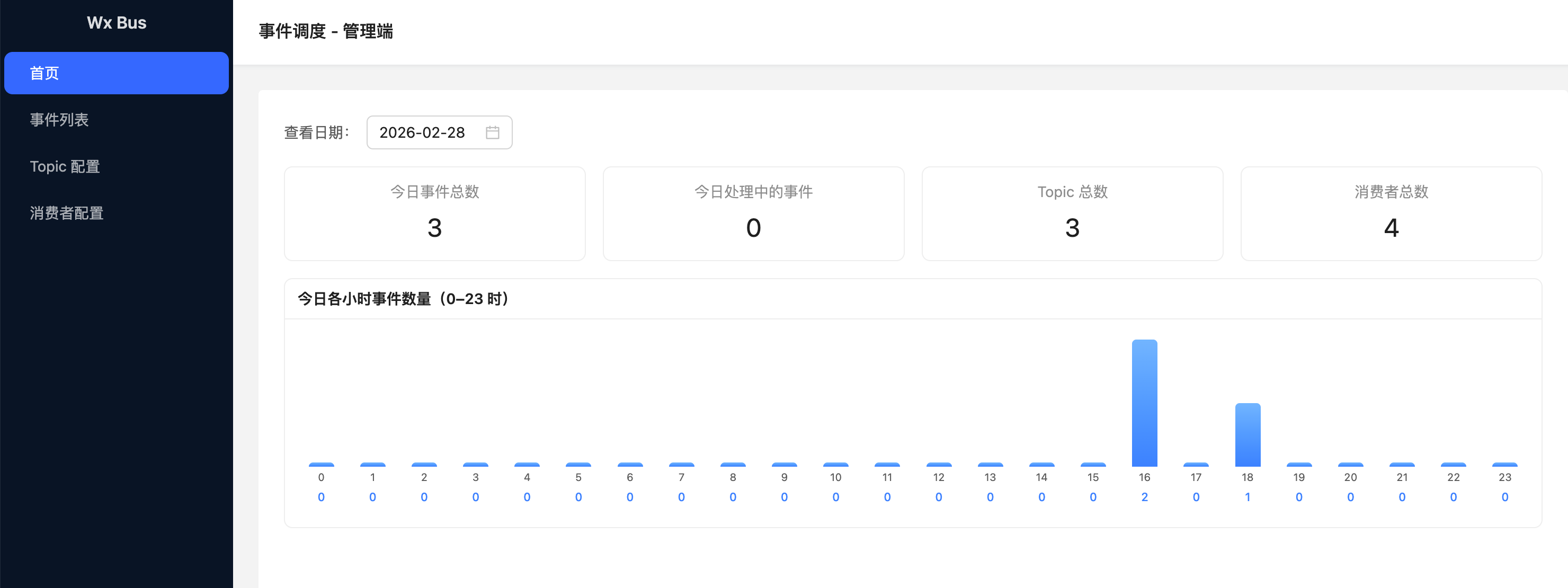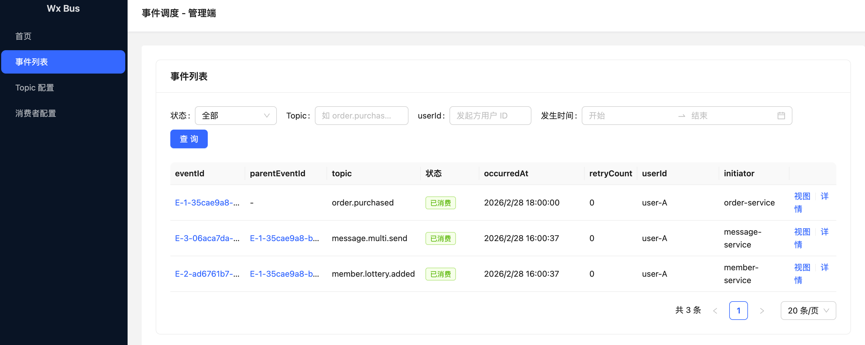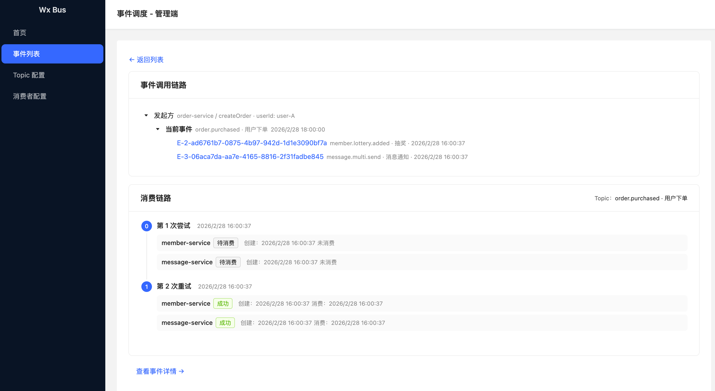 基于 JDK 21、Spring Boot 3 的事件调度系统,MongoDB 存储、RabbitMQ 解耦,支持事件发起方与调用链路查看。