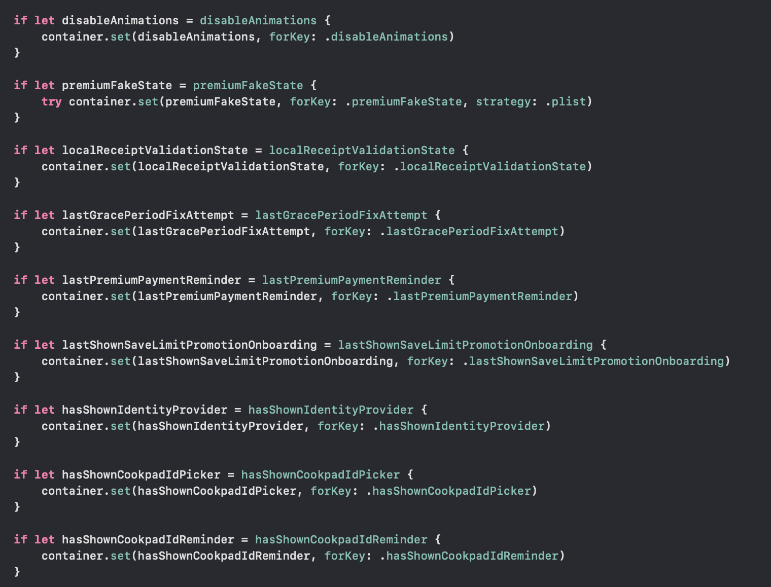 type that held a series of properties that related to UserDefaults, but to map that into the value container resulted in a lot of repetitive code:It would be great to avoid this somehow.