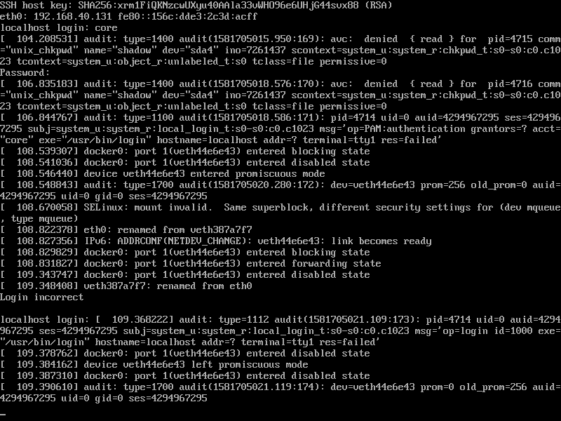 However, after I reboot I'm unable to log on as either Note that I did make a first attempt WITHOUT loading the SELinux policy so that might have screwed things up. |
