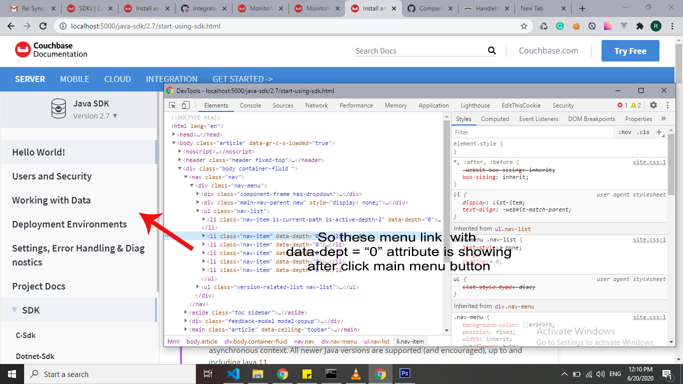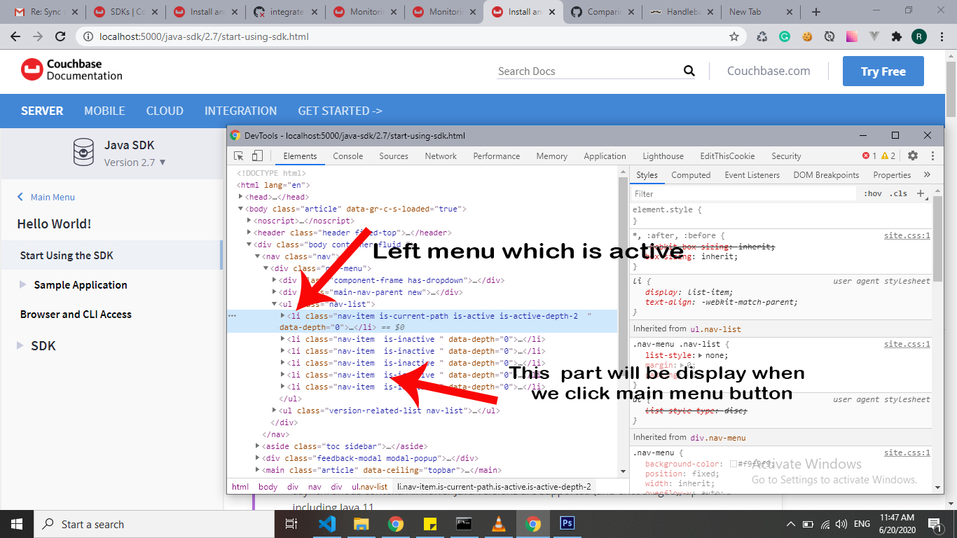 @mojavelinux FYI - we discussed this in the call tonight and I clarified the SDK nav behavior. @rakeshAlgo will be updating the behavior of SDK nav and the "< Main Menu" link too. |