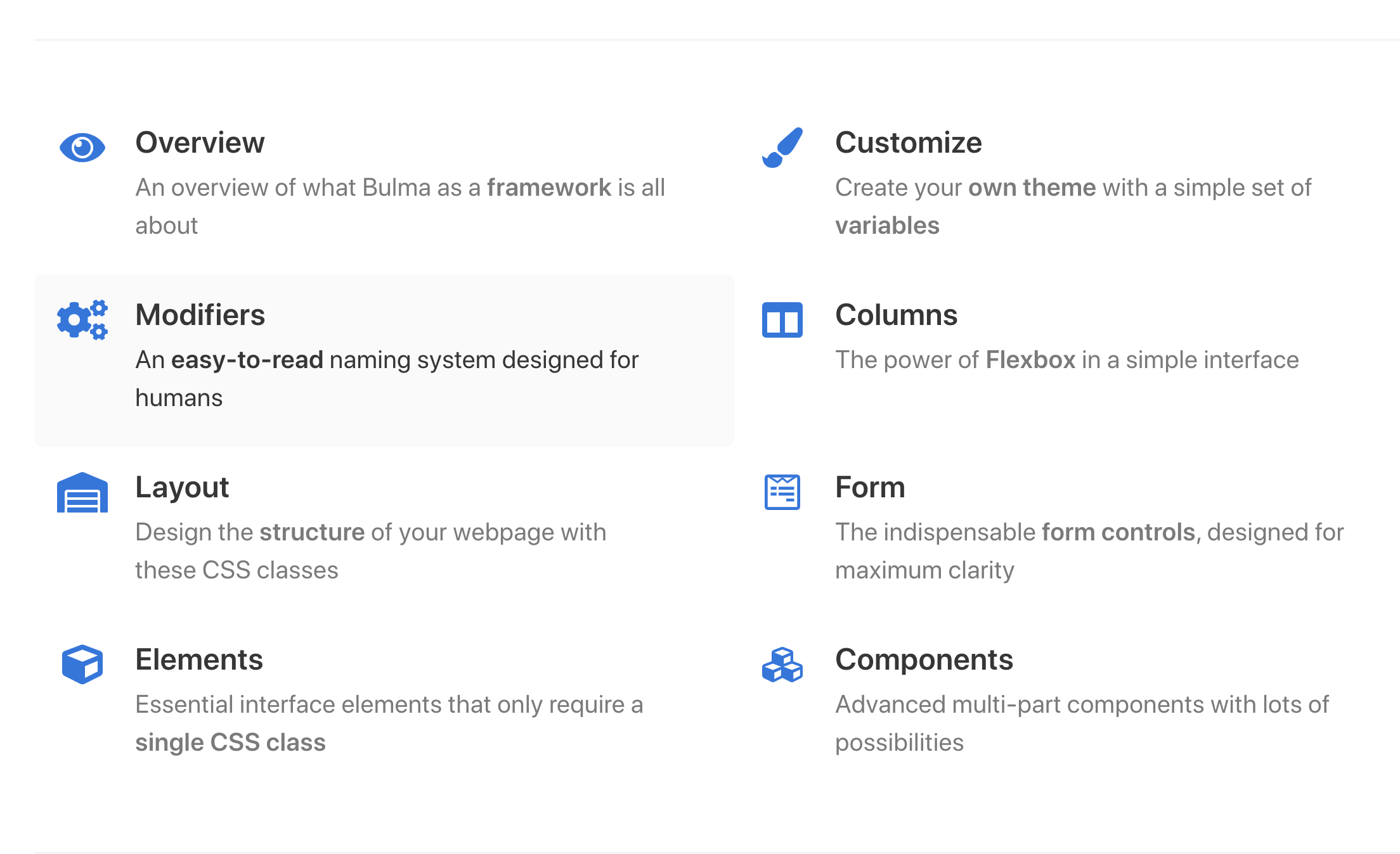The right side will probably look the same as the official Bulma component documentations.