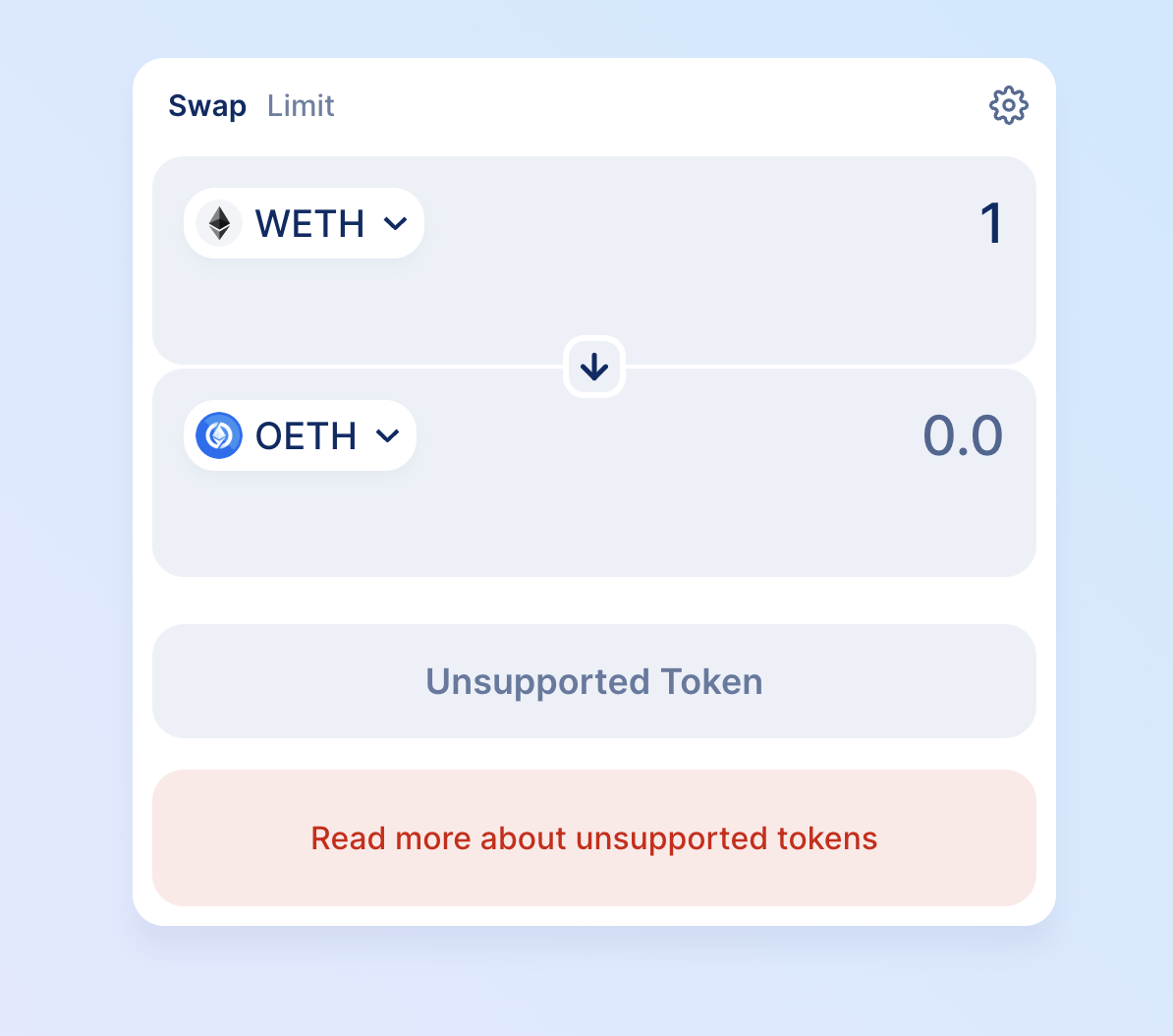 Hey @sumpg41 , the token has been enabled, you should be able to trade it now. Let me know if you still see any issues. _Originally posted by @alfetopito in https://github.com/cowprotocol/token-lists/issues/217#issuecomment-1618285936_ Hey @alfetopito, I am still seeing the OETH token shown as unsupported. <img width="597" alt="Screenshot 2023-07-05 at 8 47 11 AM" src="https://user-images.githubusercontent.com/80375331/251154038-c30ea77a-bb63-4ca8-b448-5feb7d1f929b.png">
