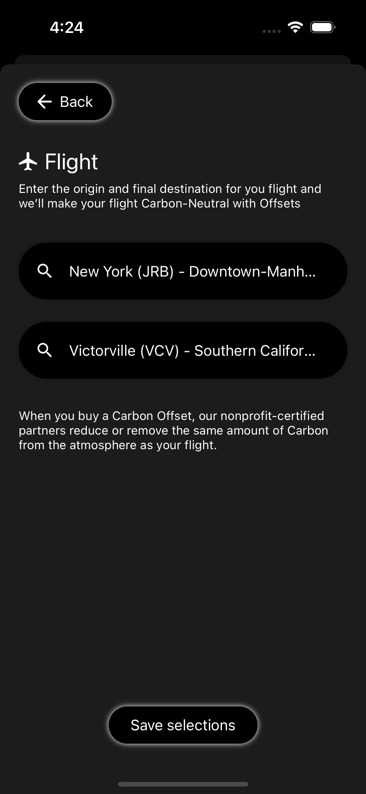 This is a demo mobile application written in SwiftUI in which the user can select an origin and a destination airport, and calculate the carbon footprint of taking a flight between the selected airport.