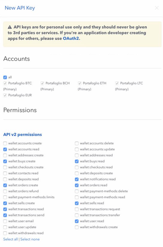 Esta página mostra as configurações mínimas necessárias por troca para criar uma chave de API ativa.