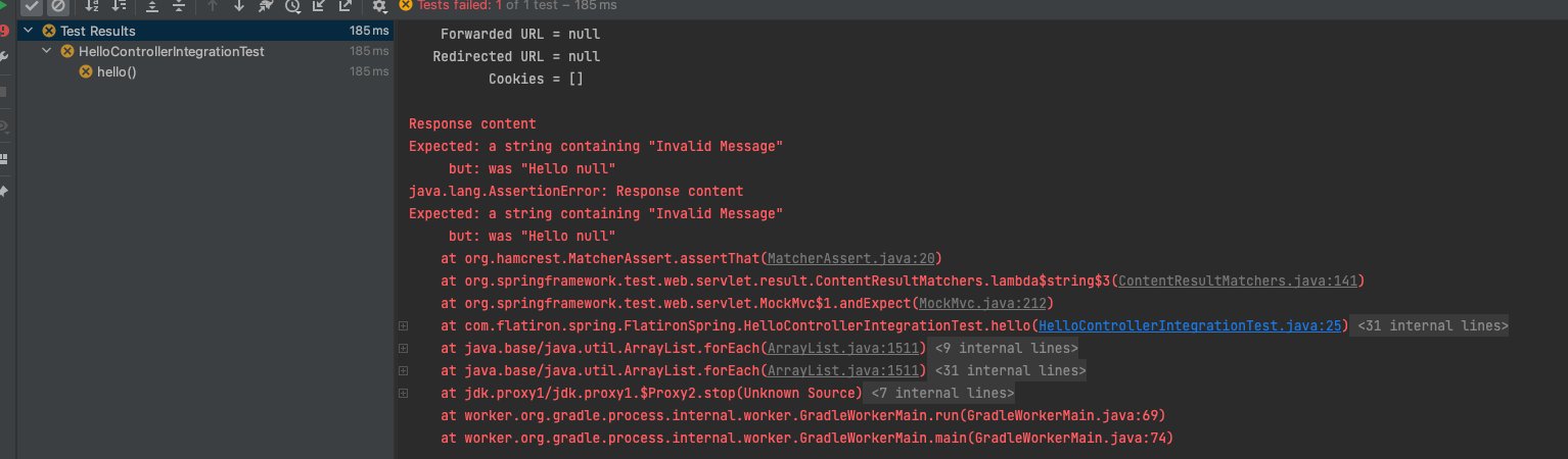- As expected, the String returned by the endpoint does not match the string we told the test to expect