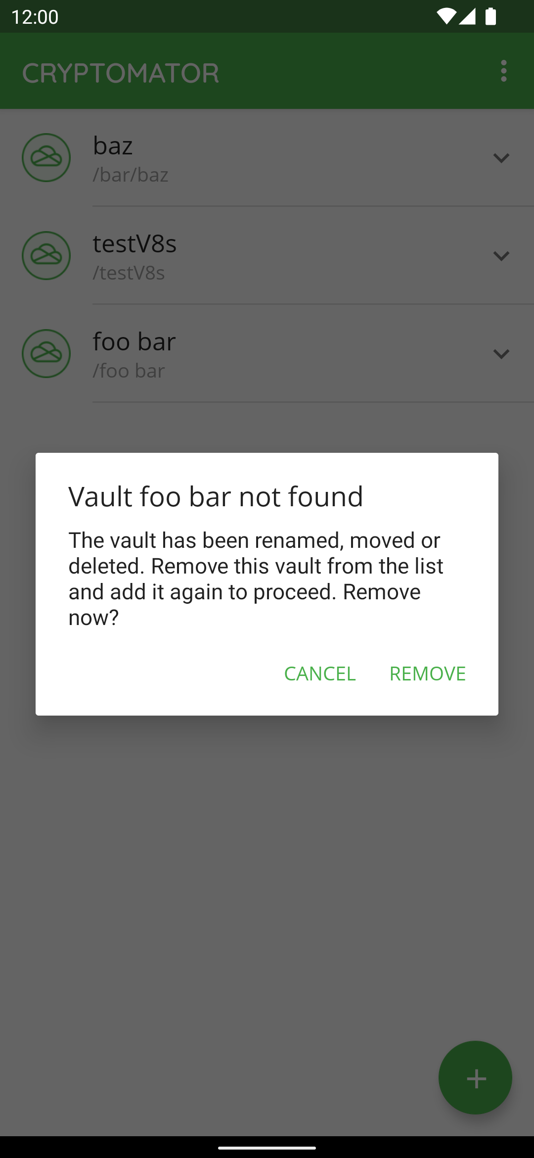### Please agree to the following - [X] I have searched [existing issues](https://github.com/cryptomator/android/issues?q=) for duplicates - [X] I agree to follow this project's [Code of Conduct](https://github.com/cryptomator/android/blob/develop/.github/CODE_OF_CONDUCT.md) ### Summary "Vault not found" dialog is displayed during unlocking if it contains a blank character ### System Setup ```markdown - Android: x - Cryptomator: 1.7.0 ``` ### Cloud Type _No response_ ### Steps to Reproduce 1. Create or add a vault `Foo bar` 2. Unlock vault ### Expected Behavior Vault is unlocked ### Actual Behavior <img src="https://user-images.githubusercontent.com/1786772/156776802-3b1c8357-145c-49e4-a6bb-bf10cb5bc292.png" height="600" /> ### Reproducibility Always ### Relevant Log Output _No response_ ### Anything else? _No response_