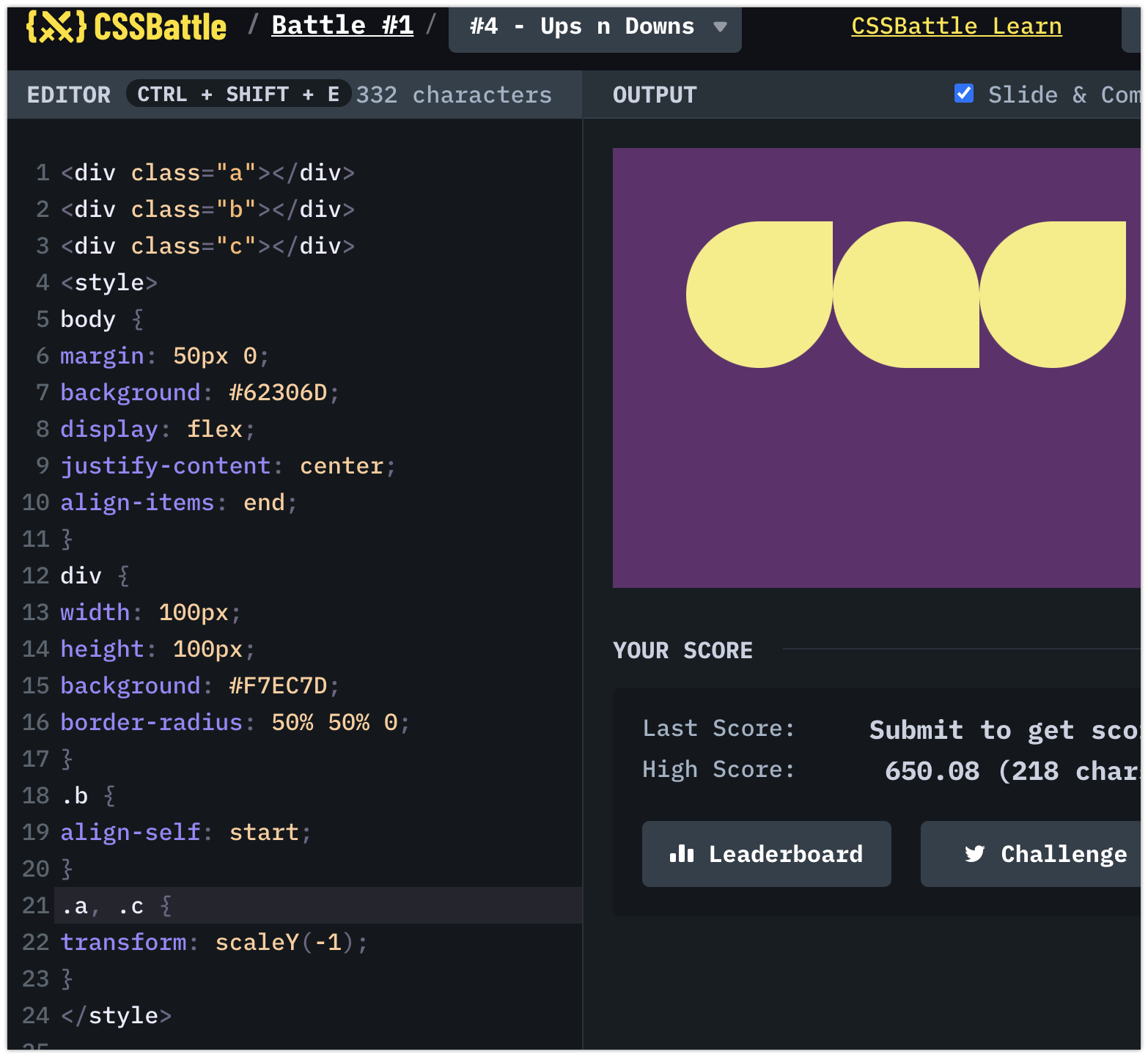 Battle #1 #4 Ups and Downs why such a low score if output it's identical ? #114