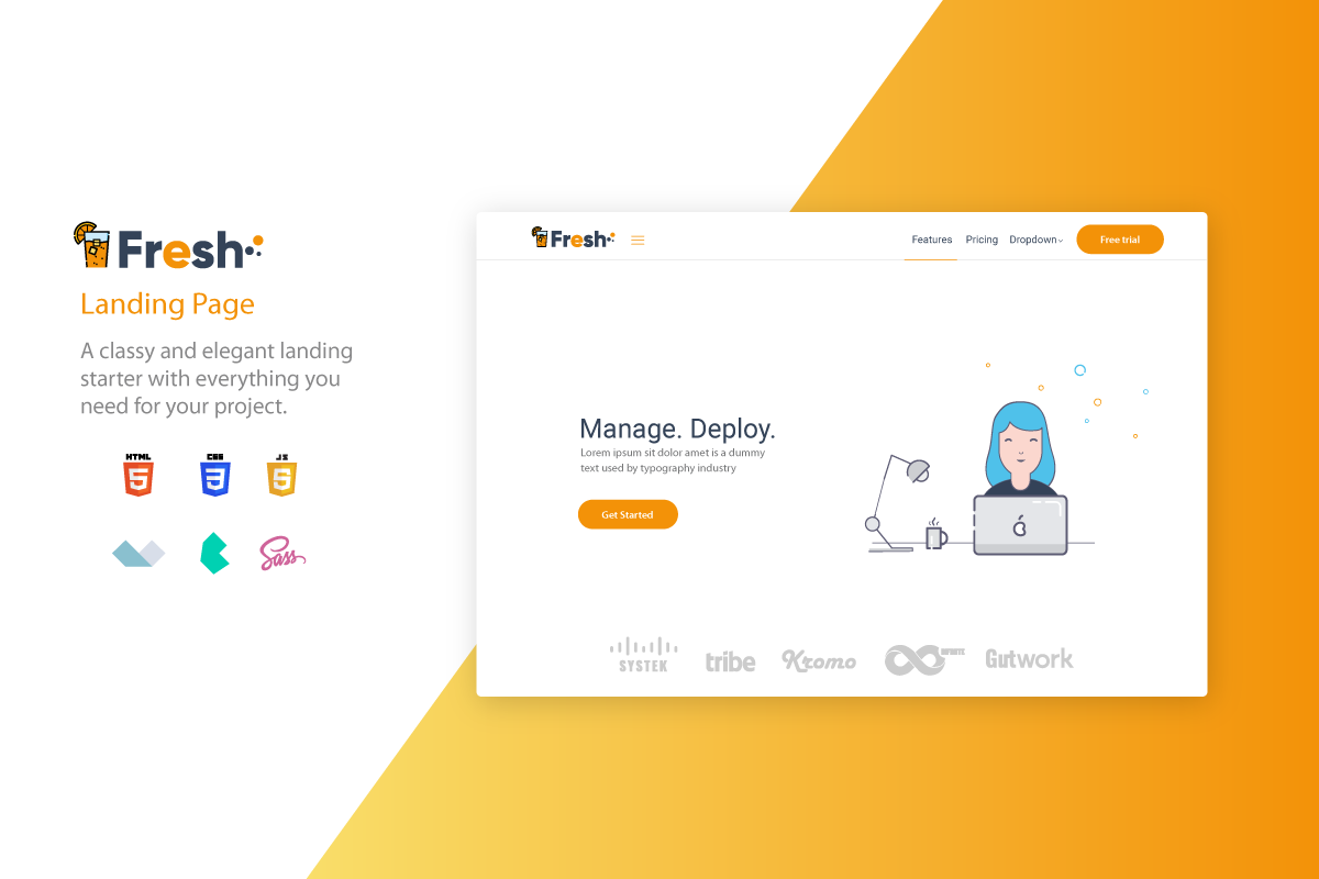 Fresh is a free landing page starter built by cssninjaStudio.