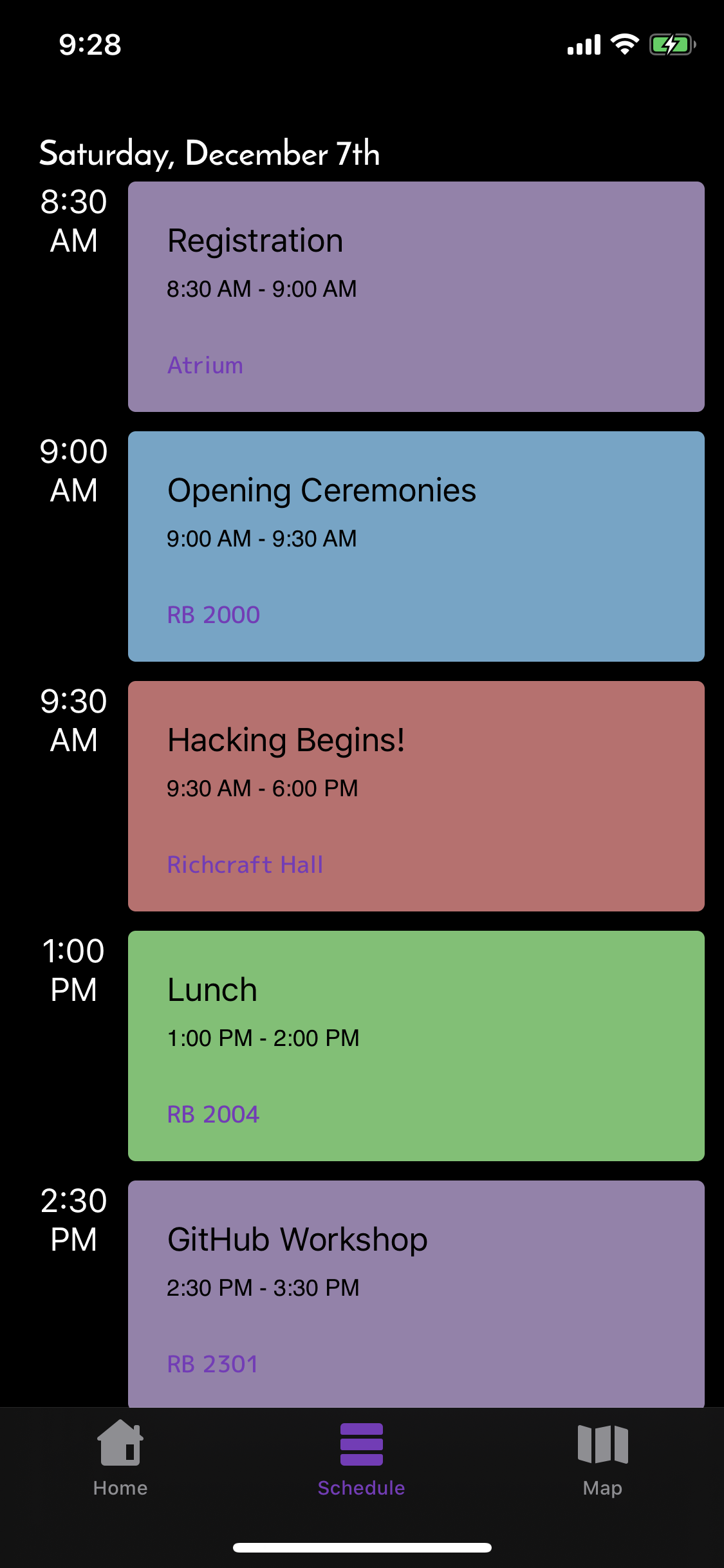 This PR introduces the 1st version of the Schedule screen in the app. There are still some more visual improvements that need to be made on the screen before LHD: