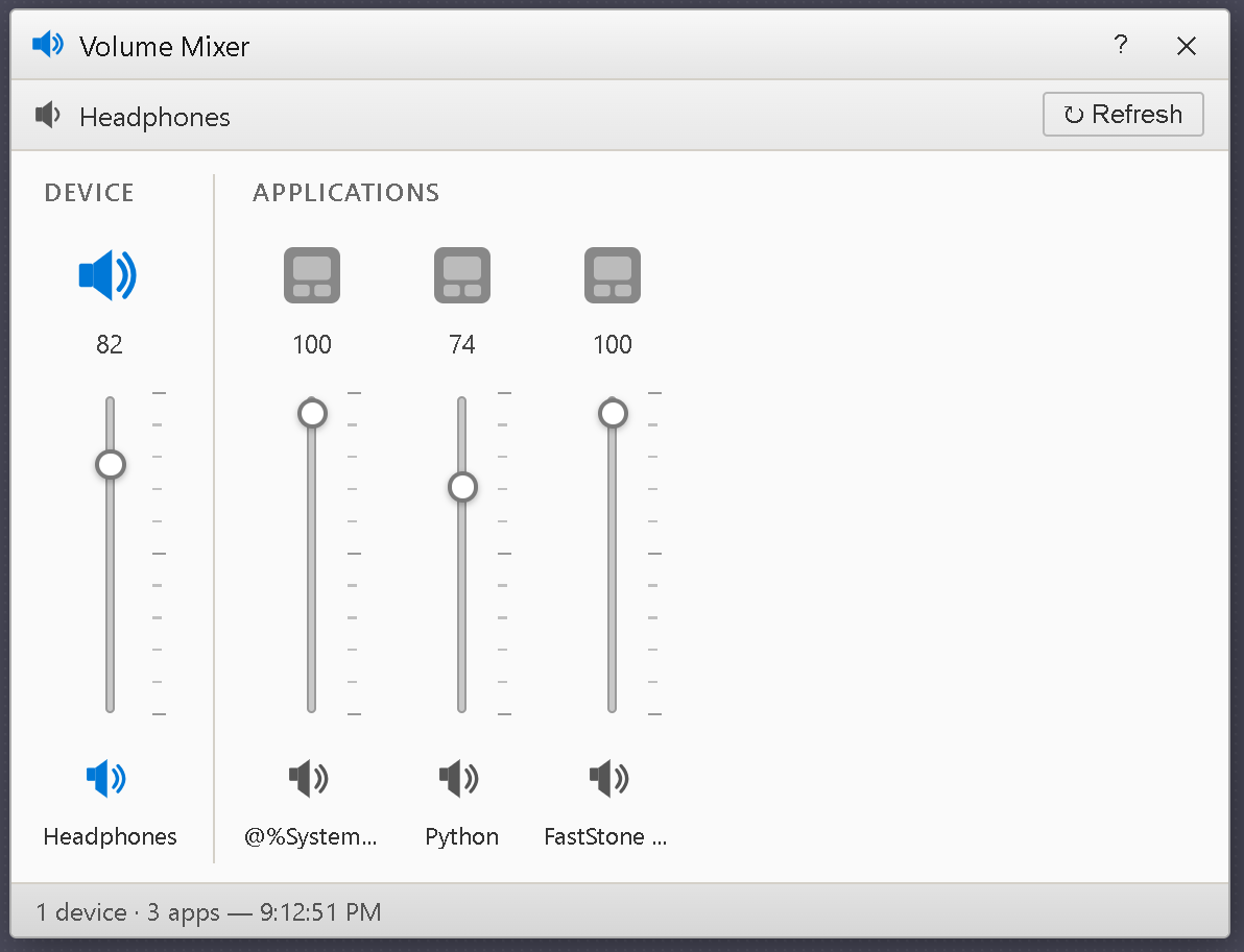 🔄 The UI auto-refreshes every 4 seconds to detect new/closed app sessions, just like the real sndvol.exe.