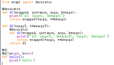 print(f'd3: {argsT}, {kwargsT}, {args}, {kwargs}')