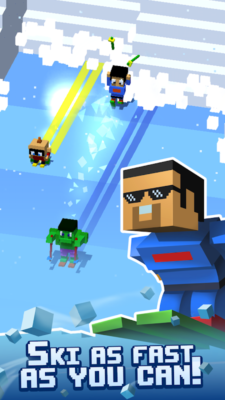 Description of Crossy Snow: Avalanche! Hop on your skis and speed away - you're being chased by a huge avalanche of snow... and pixels!