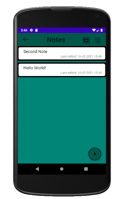 Skipped adding second note. Long click on specific note to select it. Note with black border selected.