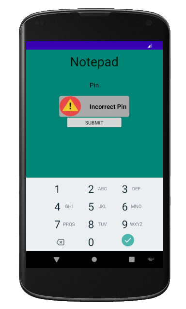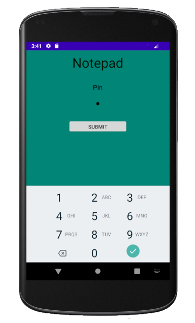Upon correct pin submitted, taken to the list of notes. (Currently none)