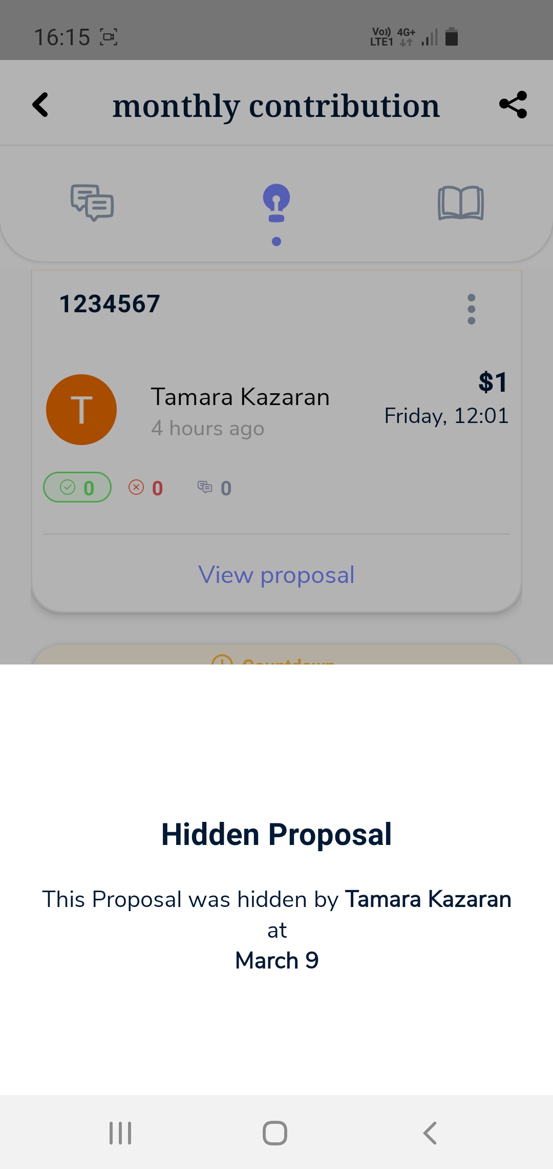 - Go to a common page where your proposal was hidden by moderator.