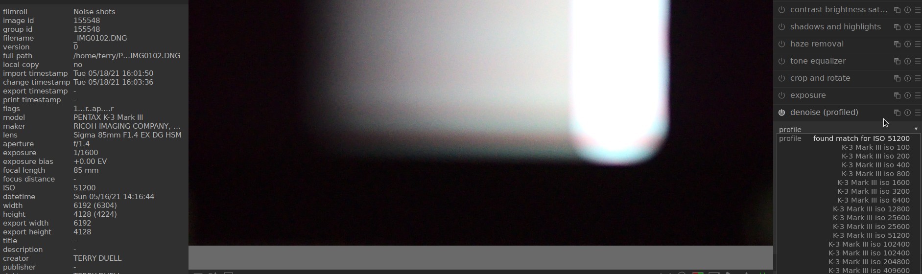 denoise (profiled) will show 'found match for ISO...'