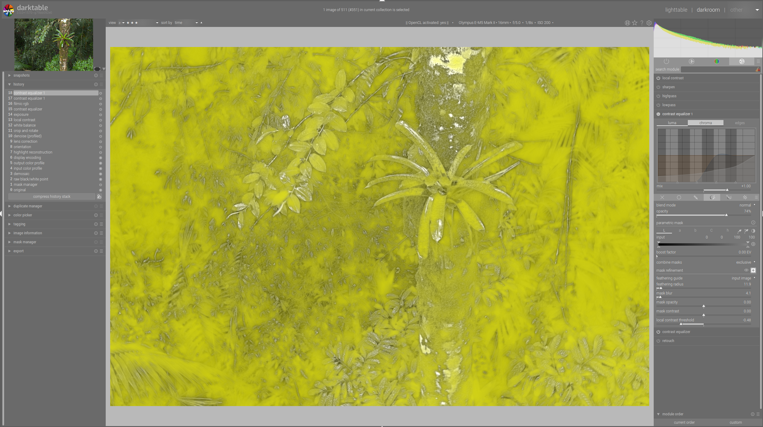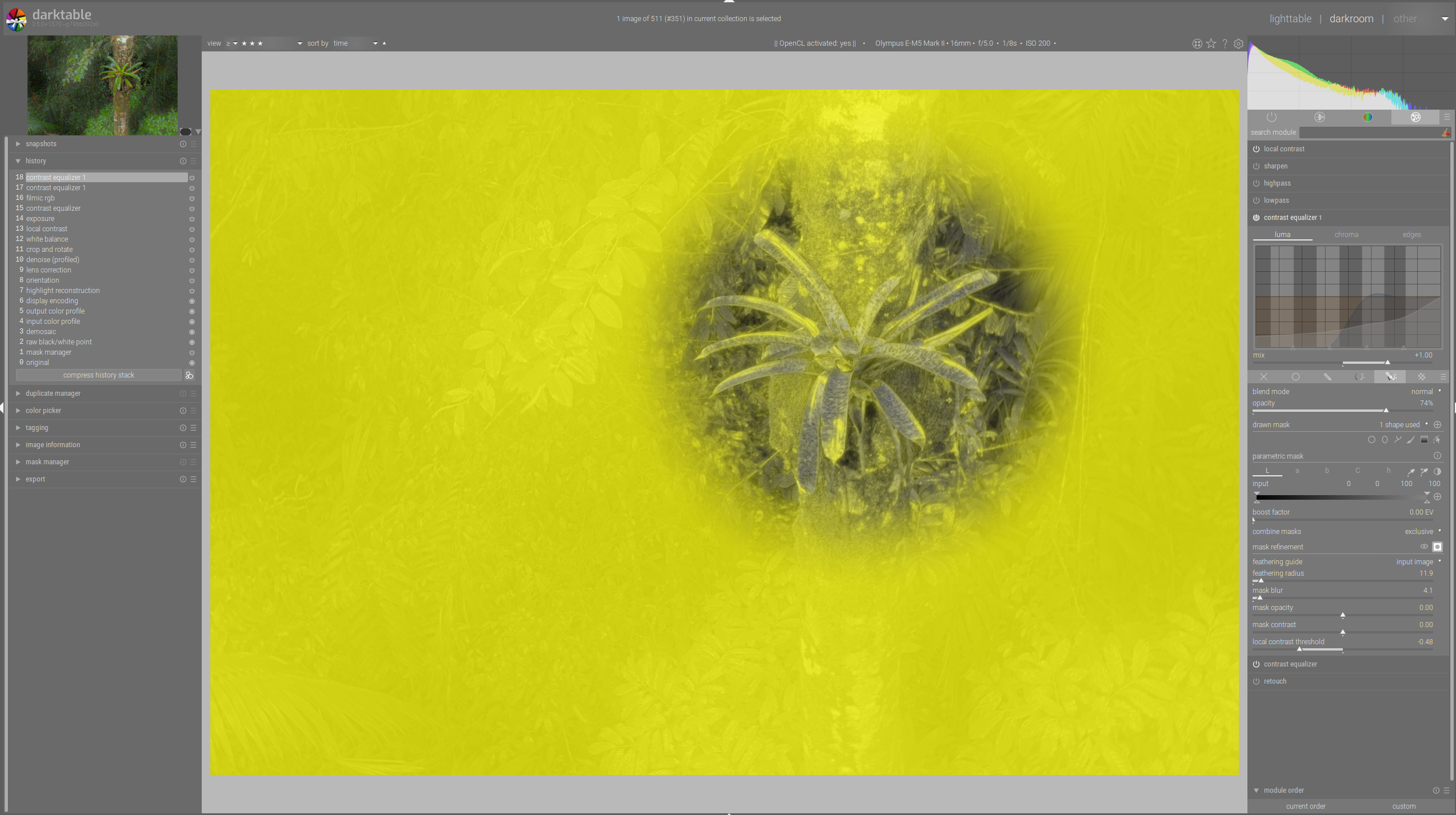 We would like to use modules like sharpening, local contrast, denoising to work only on image areas most suitable. Or we can brighten up some areas with lots of details.