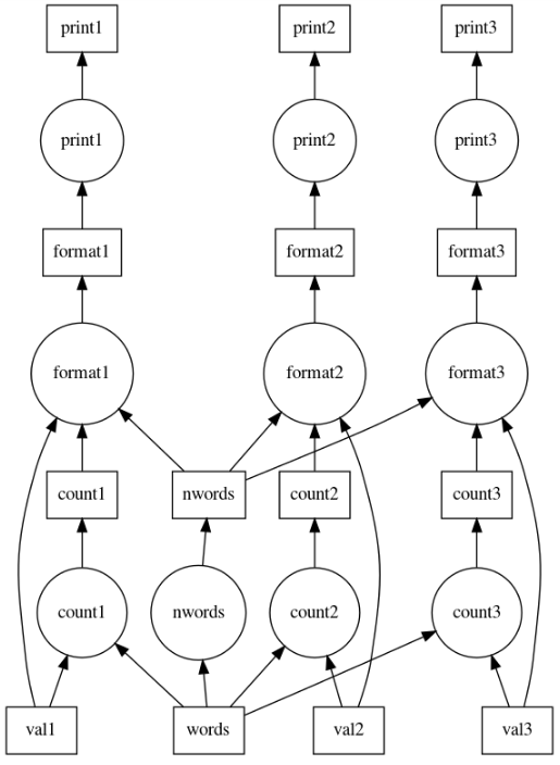 collapseandverboseoptions tovisualize. Collapse gets rid of all non-connected non-task boxes as well as any boxes that are just the output of a task that feeds into other tasks. Verbose adds a label to all the boxes even if the label is a duplicate.This came up in #5928. Here are some images of what the new graphs from that page would look like: