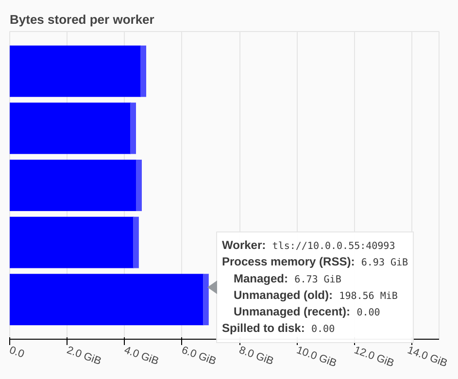Note 1: Memory usage after releasing the keys is ~200MiB per worker.