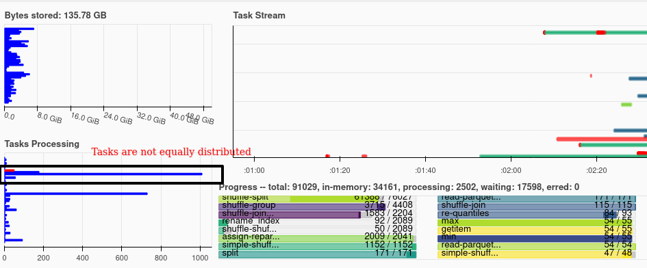 Tasks are not uniformly distributed across all the available dask workers. The majority of the tasks, are getting piled up on a single worker. Is this an expected behavior?