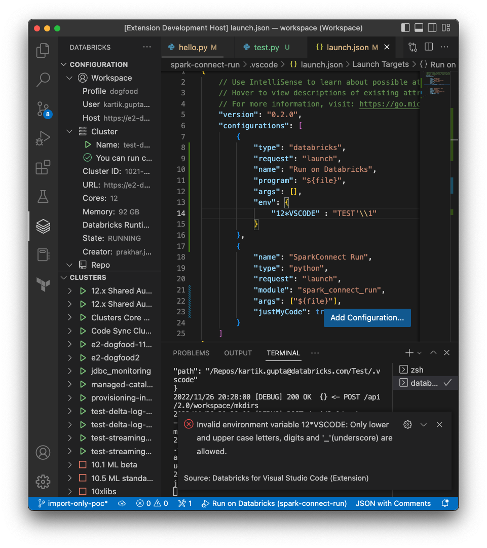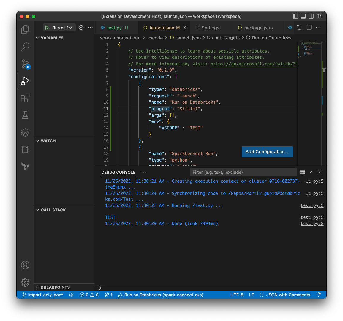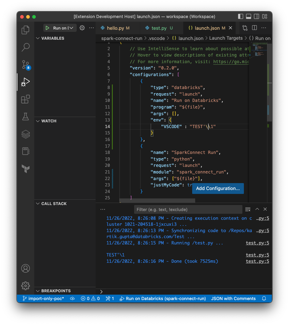 Support environment variables in 'Run on Databricks' custom debug config (#247)