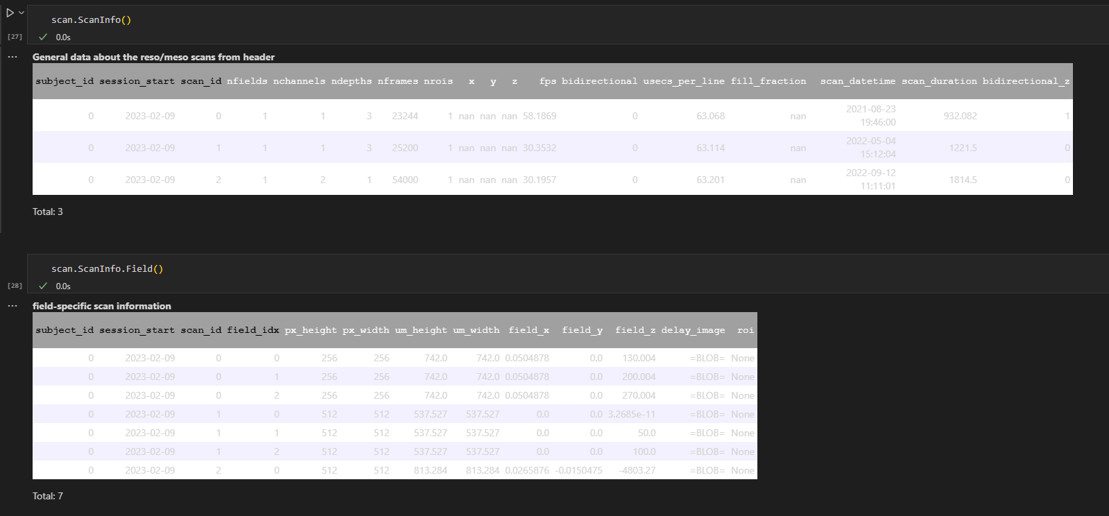 .xmlmetadata files into theScanInfoandScanInfo.Fieldtables from DataJoint Element Calcium Imaging. Version 1 and 2 contained two z-axis controllers at different "subindex" locations in the.xmlfile. Version 3 contained only 1 z-axis coordinate which did not change during the acquisition. All 3 ingestions completed without errors and populated all the attributes correctly.In this PR I perform the following: