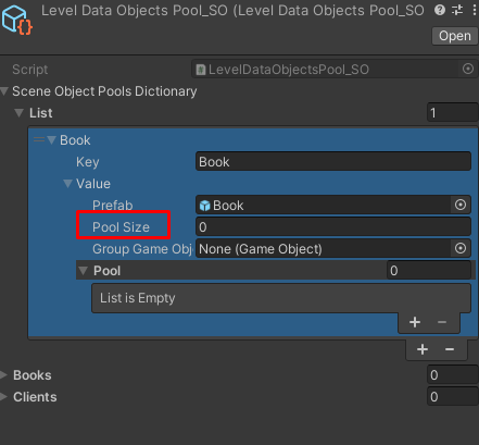 - In the folder "Resources/Level Manager/Scene Objects" you need to add the gameobjects (prefabs) you wish to be reused through loaded levels. The gameobjects (prefabs) in the "Scene Objects" folder will be loaded into "LevelDataObjectsPool_SO", where you can set the amount of gameobjects to be instantiated when launching the game (field "Pool Size").