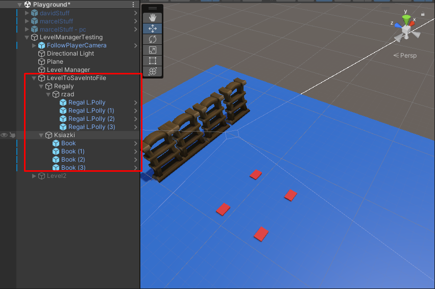 - Now you can load your level inside the game! After launching Play Mode you will notice a pool object in the scene hierarchy. Here you will have all the gameobjects instantiated from LevelDataObjectsPool_SO, in the amount you defined in that scriptable object.