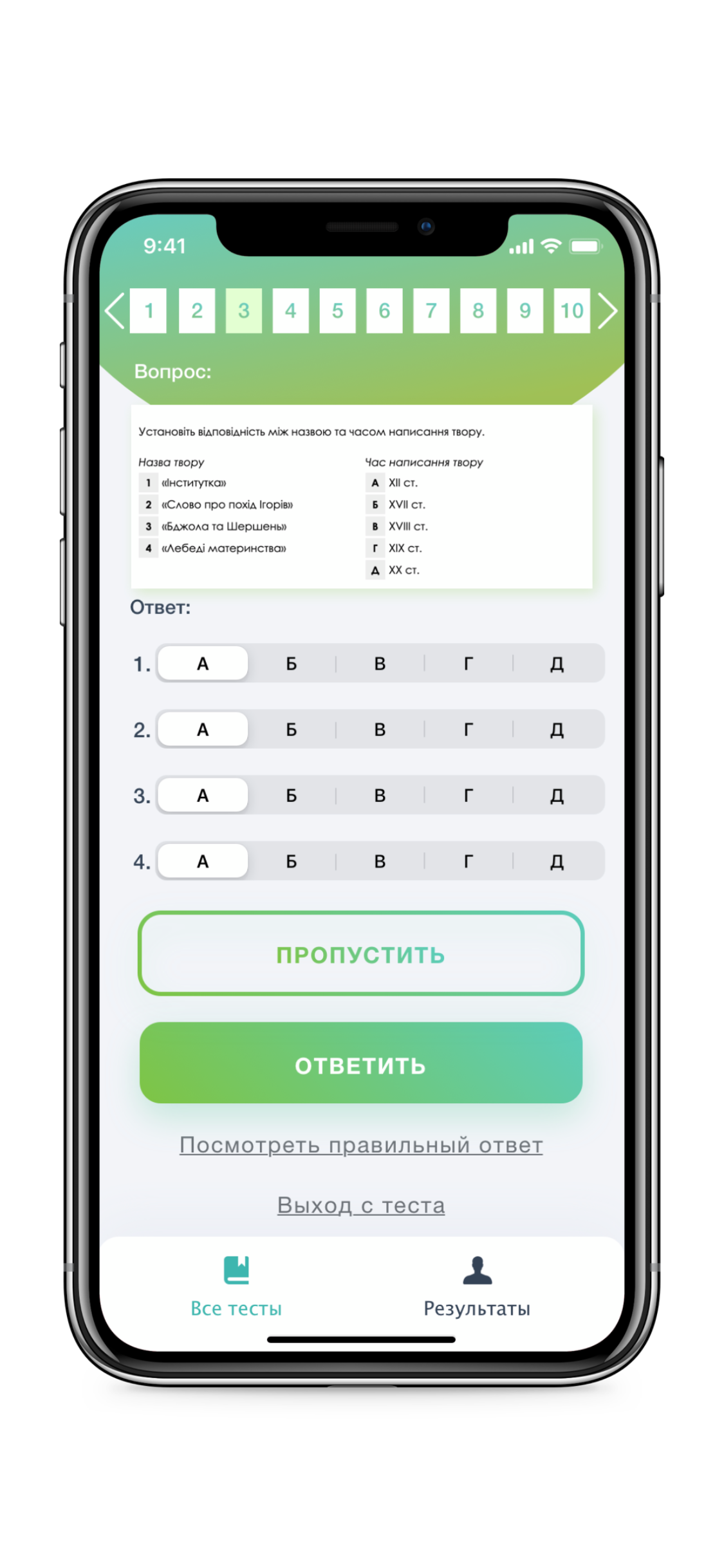 ZNO Test is my pet-project that im working on right now. It is an application for Ukrainian school students that allow practicing for the ZNO test (analog of SAT (Standardized Aptitude Tests) or GRE (Graduate Record Examination) in the USA).