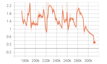 Note that with small batches it converges well, and the loss stays between 0 and 1 but it takes too long and we have more data coming in.