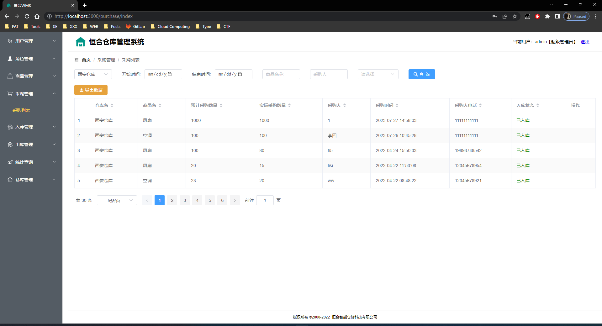创建db_warehouse数据库 导入数据库脚本文件(/db_script/db_warehouse.sql)