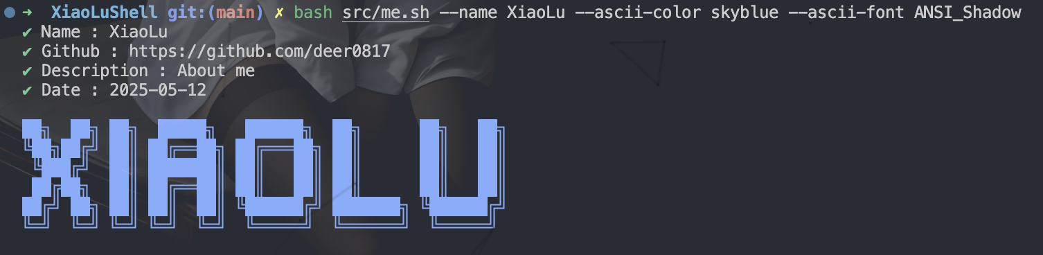 bash <(curl -sSL https://static.zloved.me/shell/me.sh) --ascii-color cyanCustomizable ASCII art